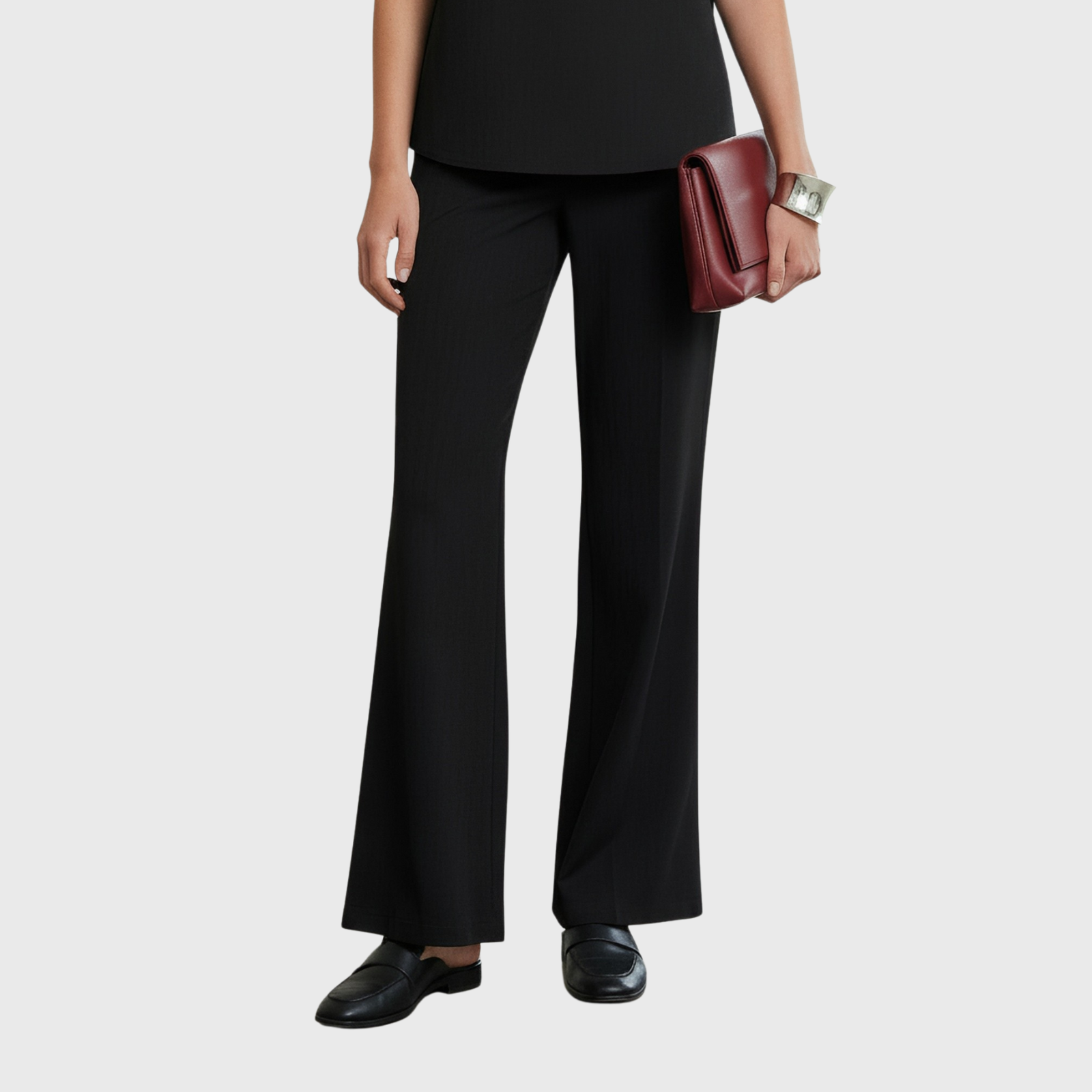 - Flared wide-leg design